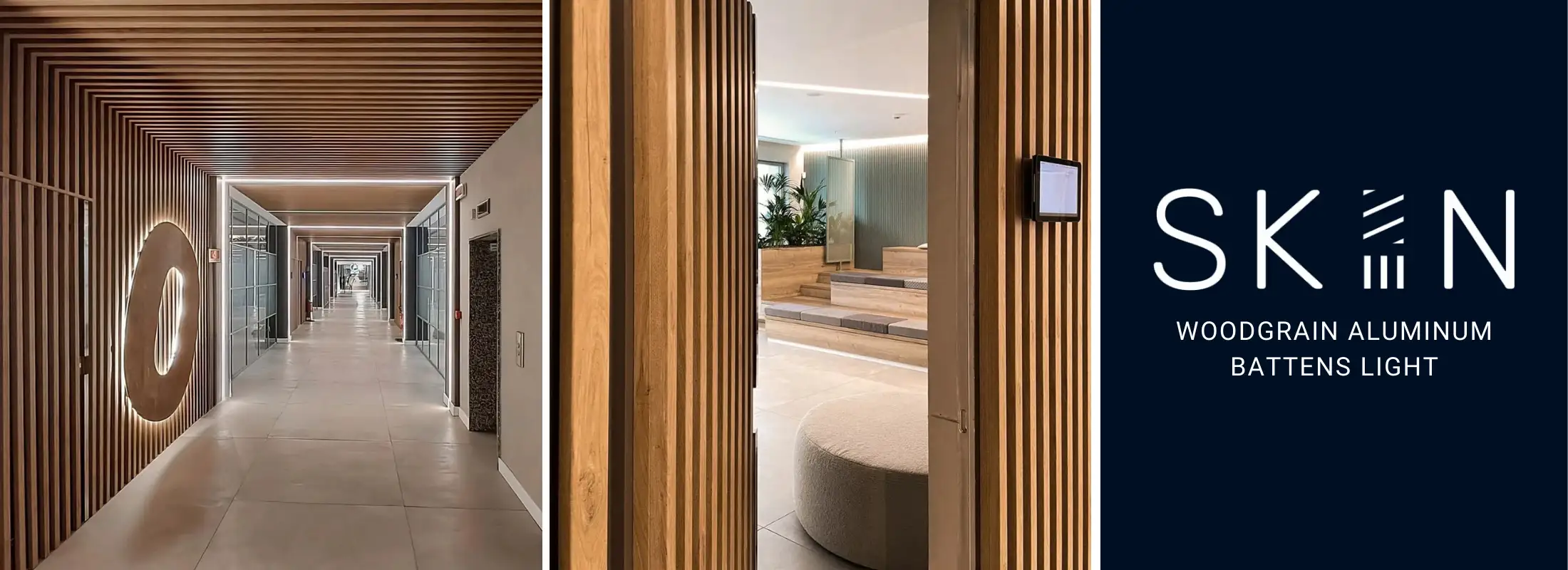 VAR GROUP’s Milan headquarters stands out for its new modern and functional layout, where every detail contributes to creating an orderly, dynamic, and professional atmosphere. The use of ForMe aluminum SKIN Battens Light perfectly integrates into this context: the choice of vertical and horizontal slats enhances spatial perception, adding depth, visual rhythm, and brightness to the spaces. The aluminum wall cladding is not merely an aesthetic element but also functional: the regular wood-effect texture lightens architectural surfaces, improving acoustics, visual comfort, and a sense of order. The minimalist lines, combined with warm wood-effect finishes and neutral wall tones, express a perfect balance between technology and hospitality.